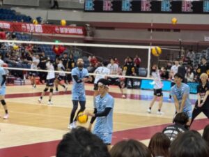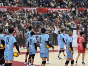 今日と明日は「春高サンバーズ」と称して全員ハチマキ姿での